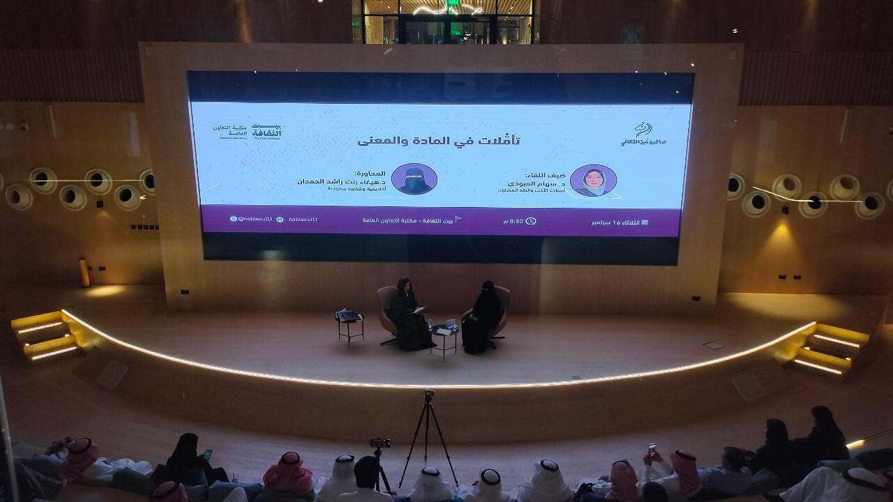 أشارت د.سهام العبودي أستاذ الأدب والنقد في اللقاء صنوفا من المواد حاملة المعنى مشيرة إلى دلالاتها في عدد من شواهد الشعر والنثر،مبينة أن الانسان عقد صلة وطيدة مع الأشياء فعبّر من خلالها عن أفكاره،وبذلك غدت تلك الأشياء ذات معان إلى جانب وظيفتها النفعية
