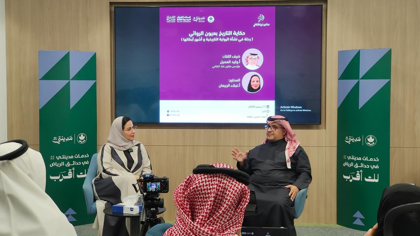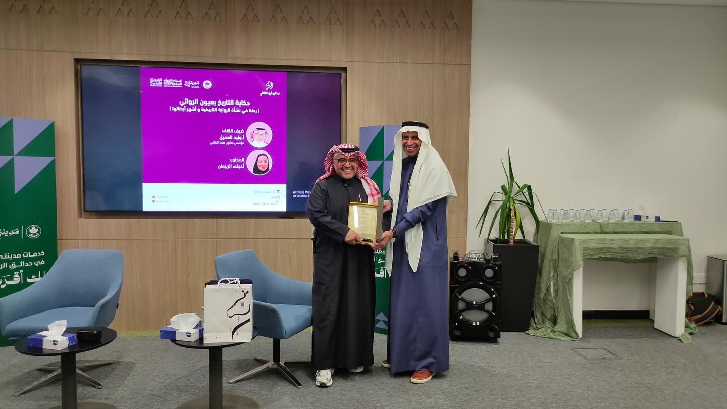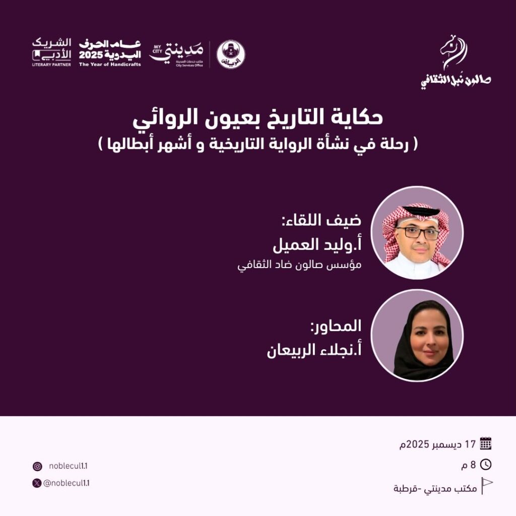 في لقاء “حكاية التاريخ بعيون الروائي” قدّم الأستاذ وليد العميل قراءة ثرية في مفهوم الرواية التاريخية، بوصفها جسراً إبداعياً يربط بين الوقائع والتخييل، ويمنح التاريخ حياة سردية نابضة.