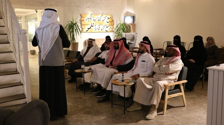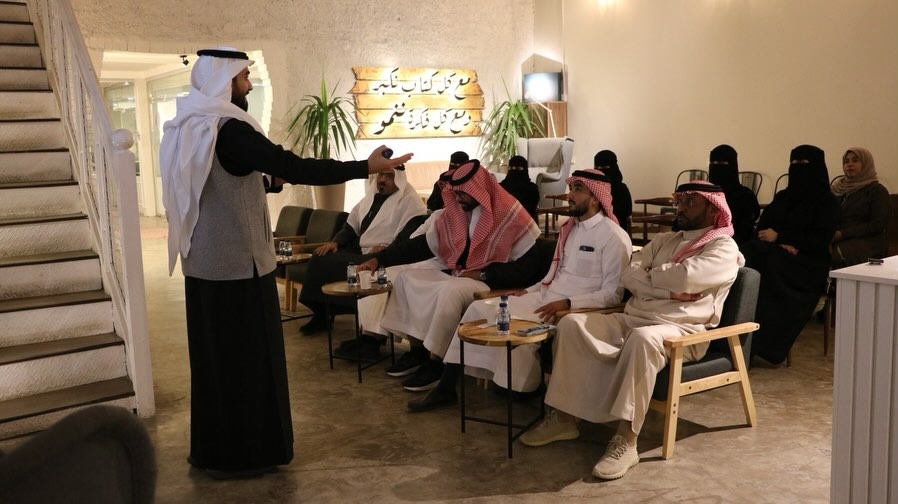 حياكم الله أصدقاء صالون_نُبل_الثقافي ضمن مبادرات الشريك_الأدبي بالتعاون مع مقهى نموّ قروث الفائز بجائزة الشريك_الأدبي مرتين على التوالي مدينة تبوك في ورشة عمل بعنوان :